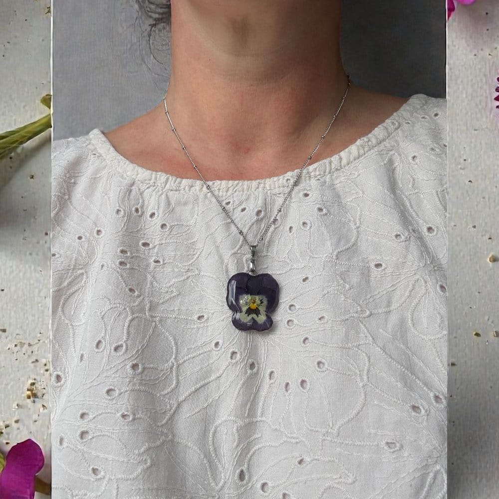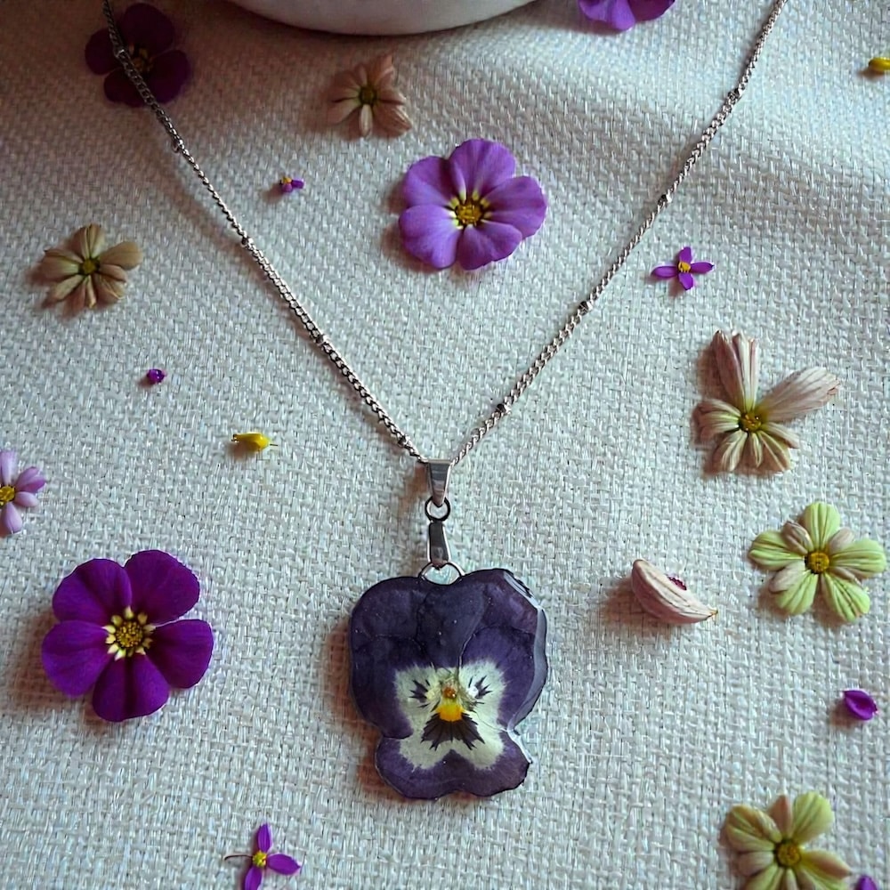 La pensée est une fleur expressive, reconnaissable entre toutes. Portée en pendentif, elle devient un bijou discret, mais chargé de sens, que l’on garde près du cœur.
